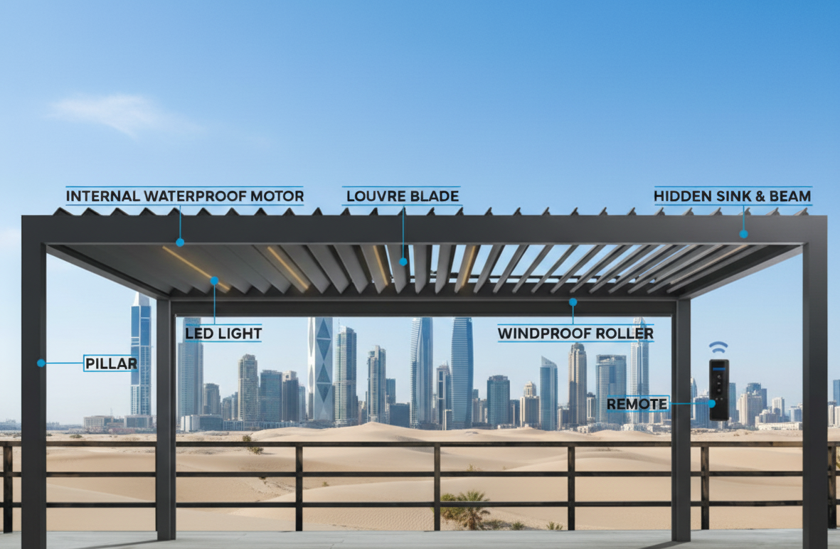 - App: control from your phone, see status, create timers—ideal for a remote control pergola Dubai installation used daily.